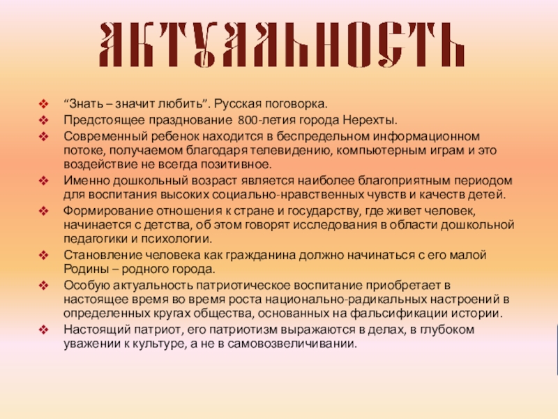 Ориентировать родителей на нравственно-патриотическое воспитание в семье