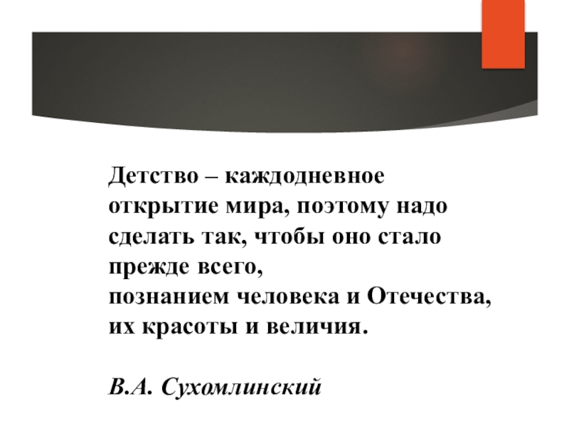 Слайд 2Детство – каждодневное открытие мира, поэтому надо сделать так, чтобы оно