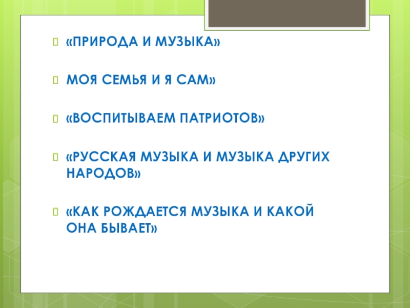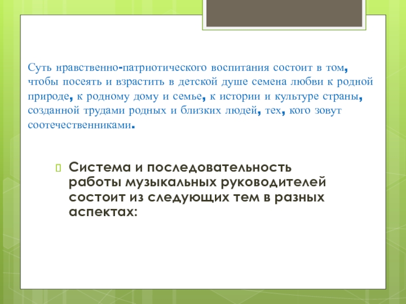 Система и последовательность работы музыкальных руководителей состоит из следующих тем в разных аспектах: