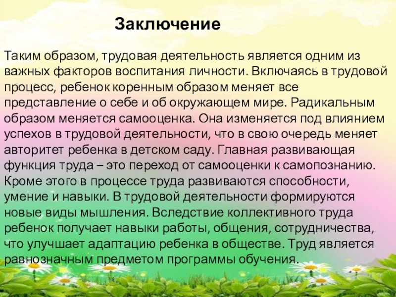 Воспитание интереса к труду, трудолюбия, ответственности, самостоятельности