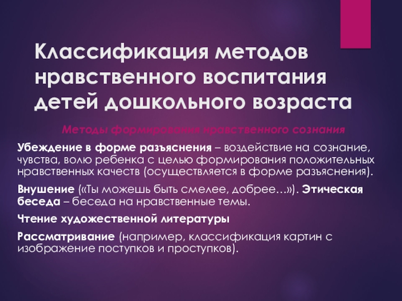 Слайд 9Классификация методов нравственного воспитания детей дошкольного возраста