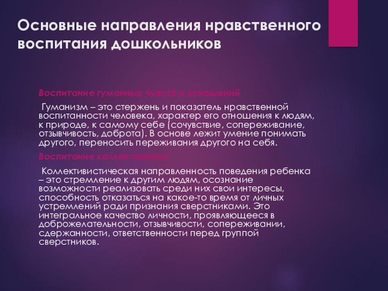 Слайд 12Основные направления нравственного воспитания дошкольников