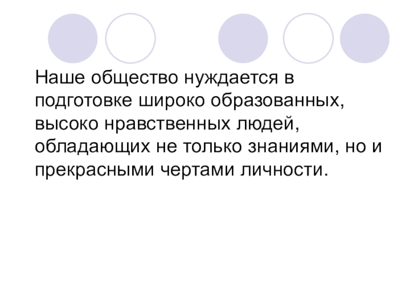 Наше общество нуждается в       Наше общество нуждается в подготовке широко образованных,