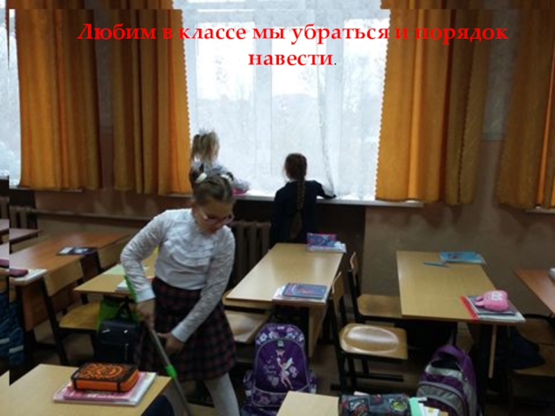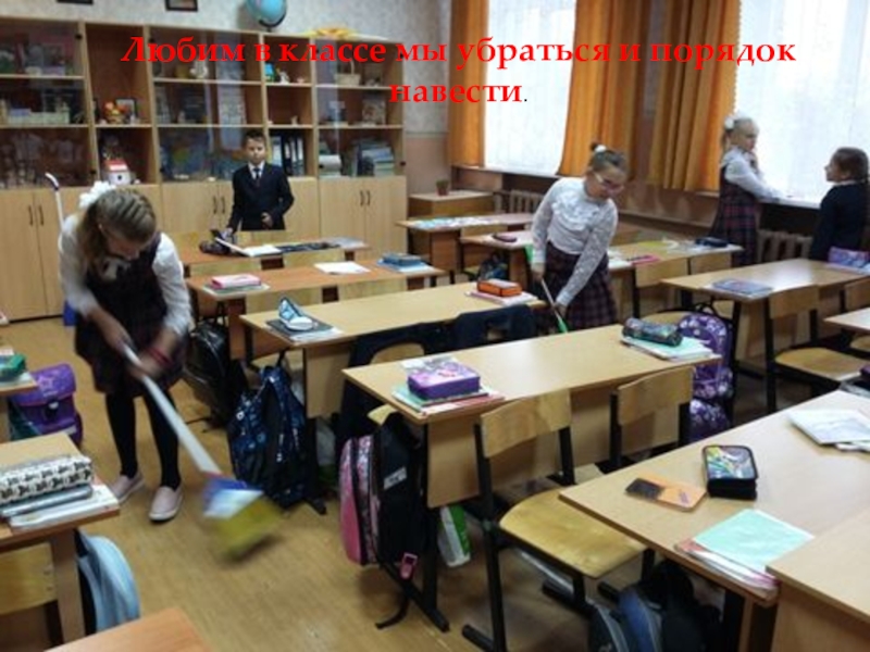Любим в классе мы убраться и порядок навести.