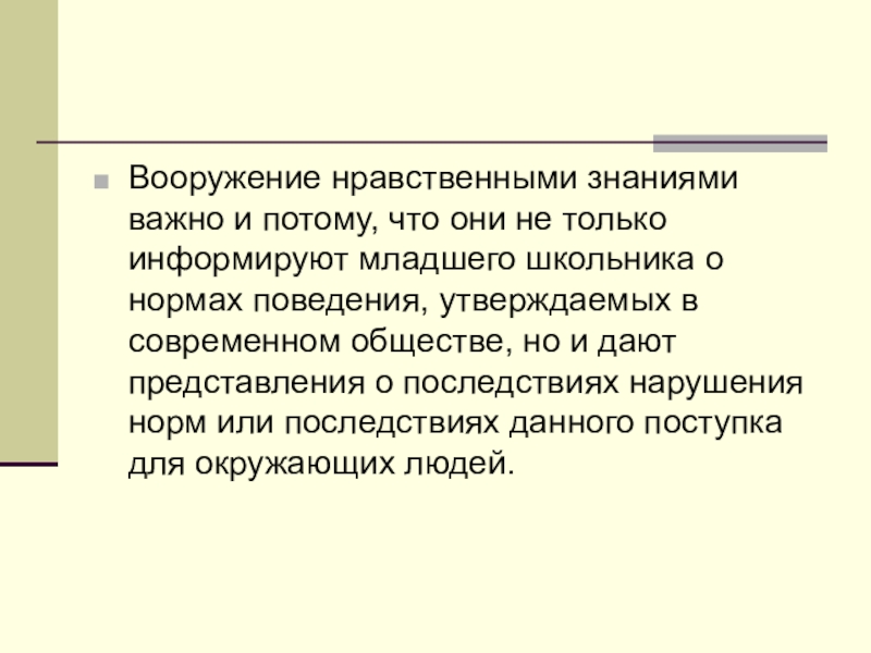 Вооружение нравственными знаниями важно и потому, что они не только информируют младшего школьника о нормах поведения, утверждаемых