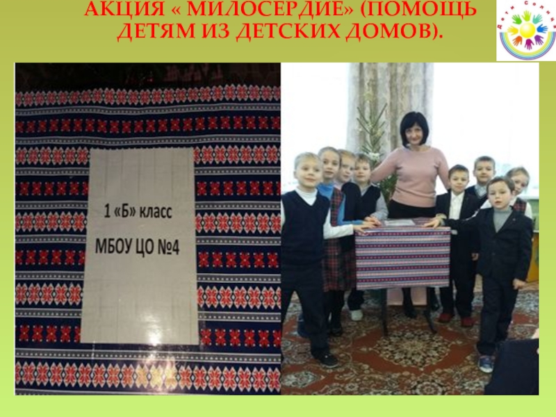 Слайд 19АКЦИЯ « МИЛОСЕРДИЕ» (ПОМОЩЬ ДЕТЯМ ИЗ ДЕТСКИХ ДОМОВ).