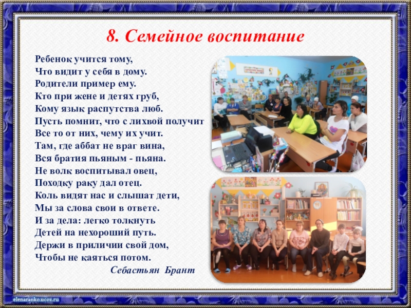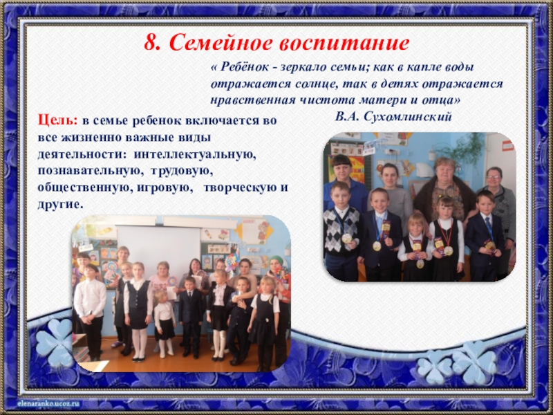 « Ребёнок - зеркало семьи; как в капле воды отражается солнце, так в детях отражается нравственная чистота матери и отца»
