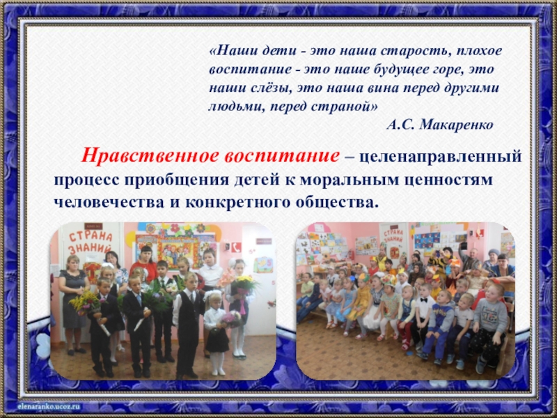 Нравственное воспитание – целенаправленный процесс приобщения детей к моральным ценностям человечества и конкретного общества.