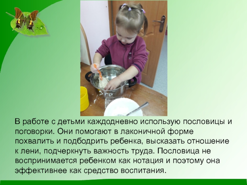 Слайд 4В работе с детьми каждодневно использую пословицы и поговорки. Они помогают