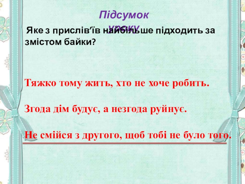 Робота над змістом байки