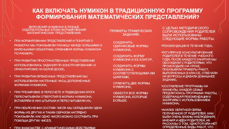 СОСТАВЛЕНИЕ ПРОГРАММЫ НА КАНИКУЛЫ. КАЖДОЙ СЕМЬЕ ПРЕДЛАГАЛАСЬ ПРОГРАММА РАБОТЫ, СОДЕРЖАЩАЯ РЕКОМЕНДАЦИИ К ЗАНЯТИЯМ С ИСПОЛЬЗОВАНИЕМ НУМИКОНА;