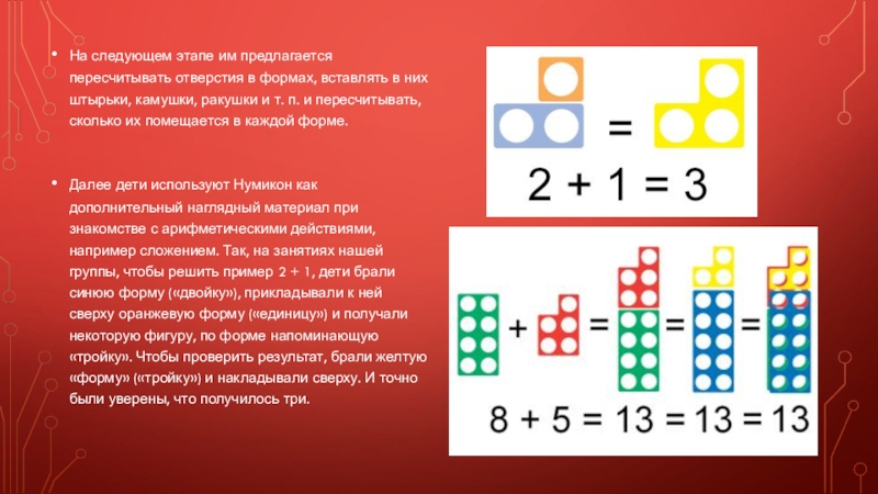 ПРИ ЗНАКОМСТВЕ С АРИФМЕТИЧЕСКИМИ ДЕЙСТВИЯМИ НУМИКОН ПОЗВОЛЯЛ ИЛЛЮСТРИРОВАТЬ СЛОЖЕНИЕ И ВЫЧИТАНИЕ;