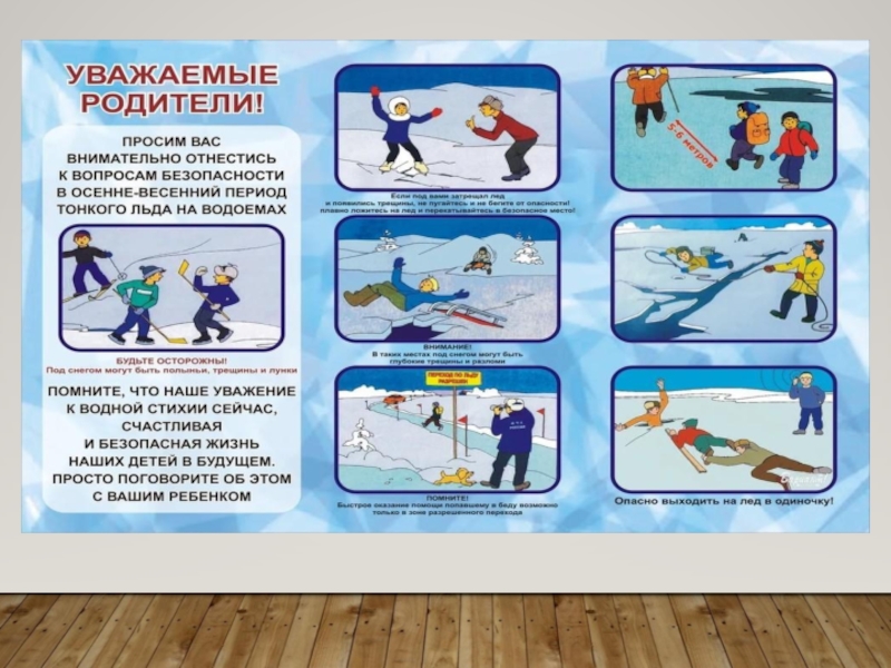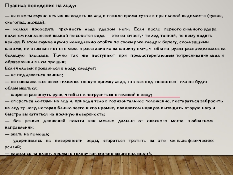 — не наваливаться всем телом на тонкую кромку льда, так как под тяжестью тела он будет обламываться;