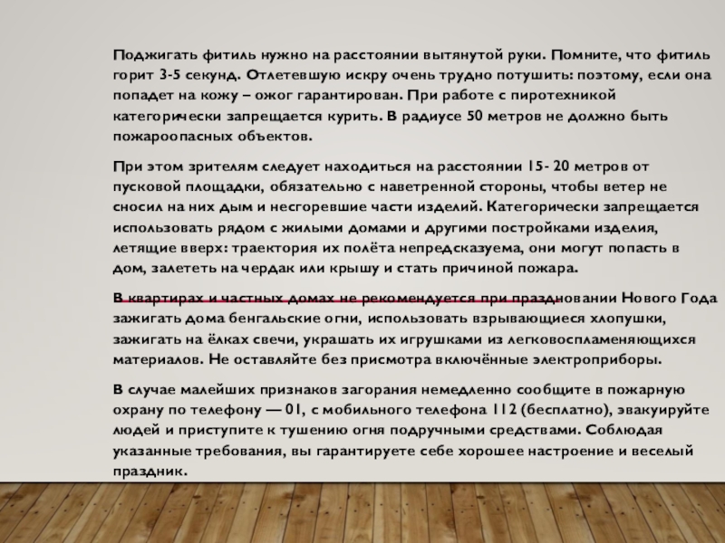 Слайд 16Поджигать фитиль нужно на расстоянии вытянутой руки. Помните, что фитиль горит