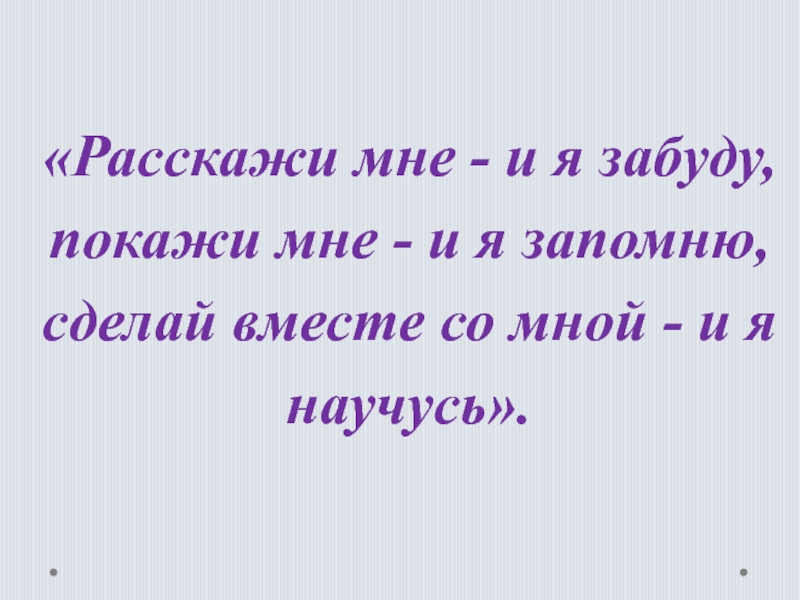 Слайд 11«Расскажи мне - и я забуду, покажи мне - и я
