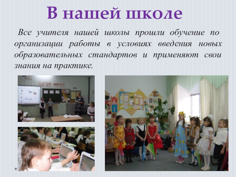 В нашей школе Все учителя нашей школы прошли обучение по организации работы в условиях введения новых образовательных