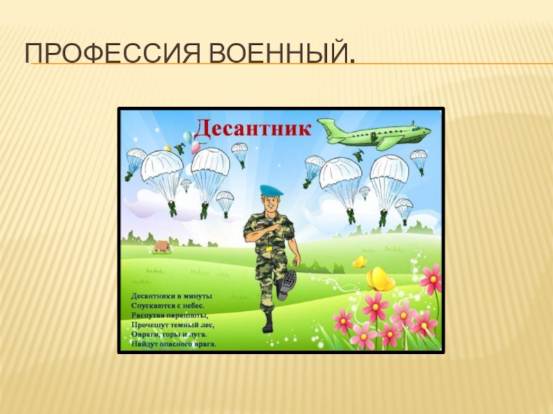 Профессия милиционер.Все профессии чудесны.Только надо постаратьсяВыбрать так одну, мой друг,Чтобы было интересно И тебе и всем вокруг.