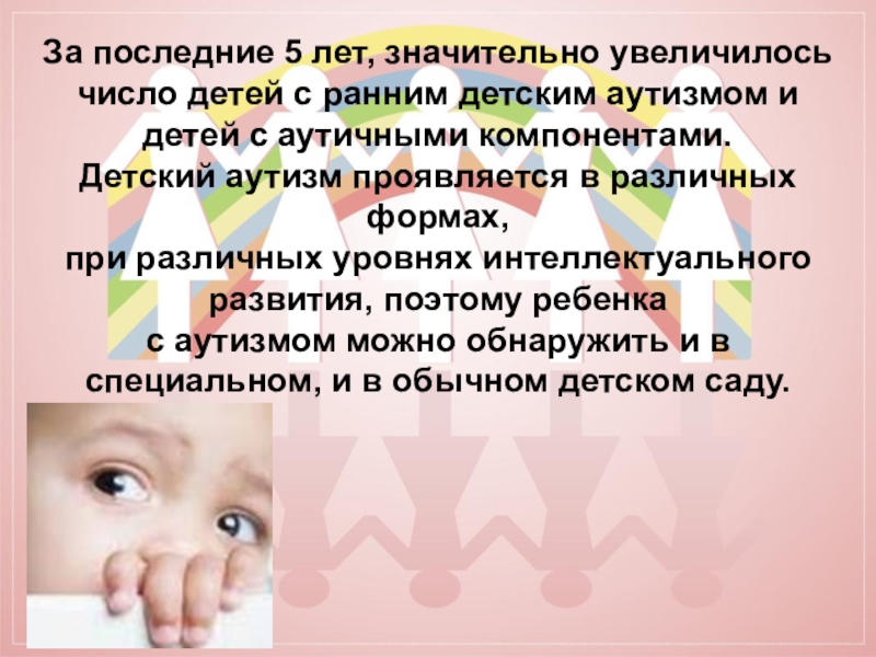 Слайд 19В действительности количество аутичных детей больше, так как стертые формы аутизма,