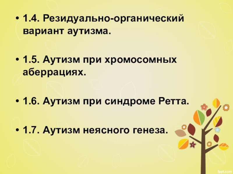 Слайд 131.4. Резидуально-органический вариант аутизма.