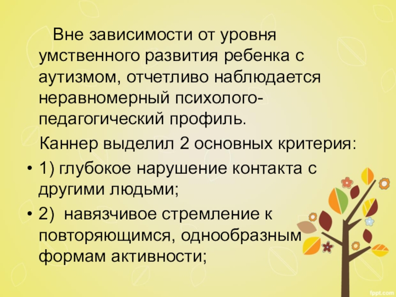 Каннер выделил 2 основных критерия:
