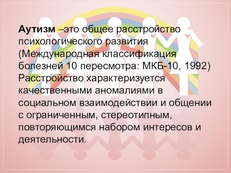 Аутизм –это общее расстройство психологического развития (Международная классификация болезней 10 пересмотра: