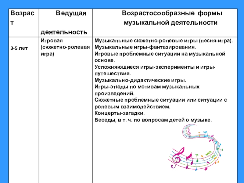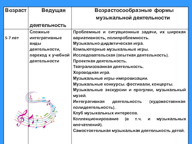 Специальные знания, связанные с различными видами музыкальной деятельности