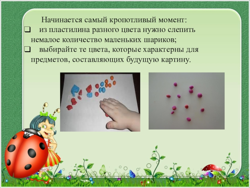 Слайд 3Приступаем к изготовлению картины из пластилина поэтапно: