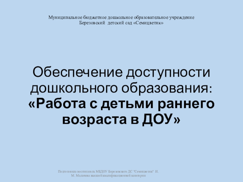 Подготовила воспитатель МБДОУ Березовского ДС "Семицветик" И.М. Малачева высшей квалификационной категории