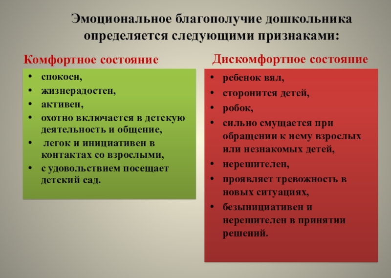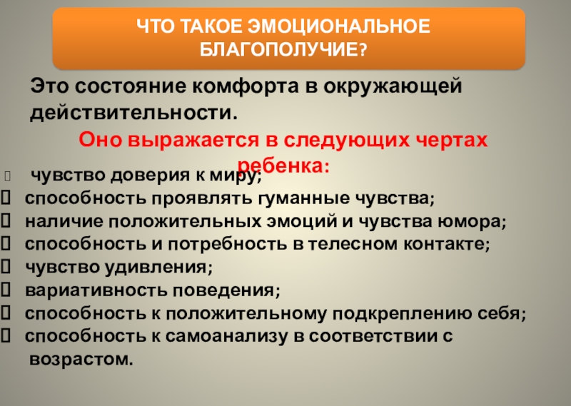 КОМФОРТНОЕ СОСТОЯНИЕ РЕБЕНКА