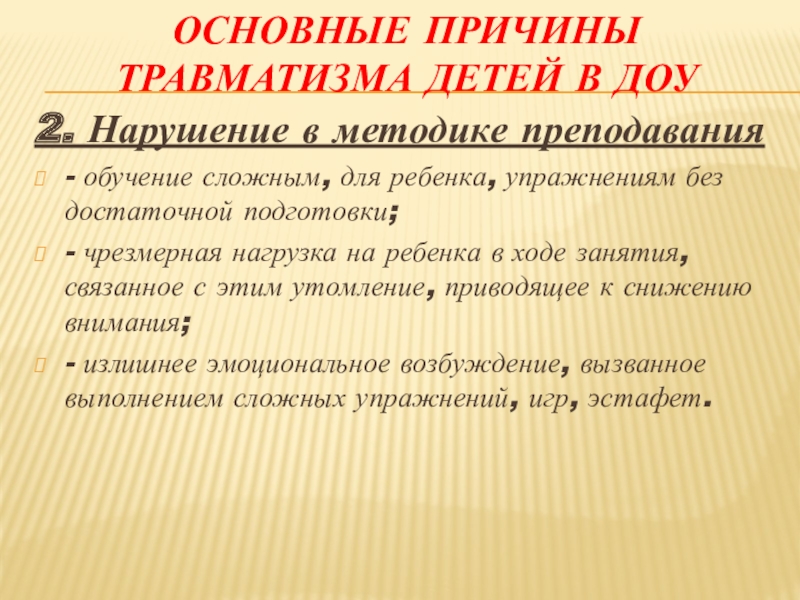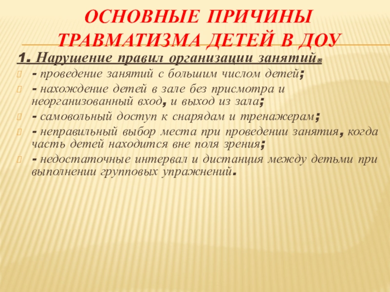 Слайд 8Основные причины травматизма детей в ДОУ
