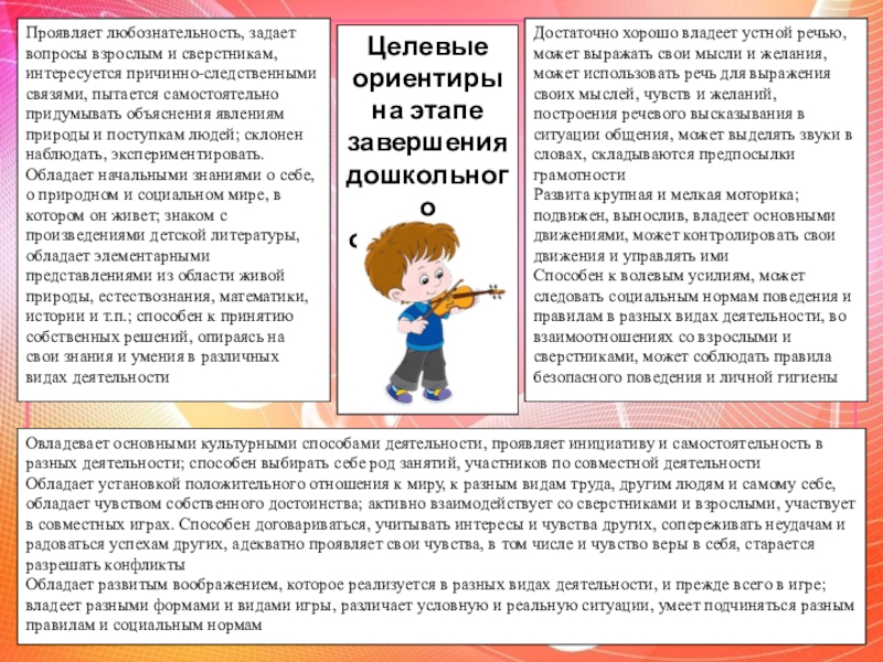 Целевые ориентиры на этапе завершения дошкольного образования