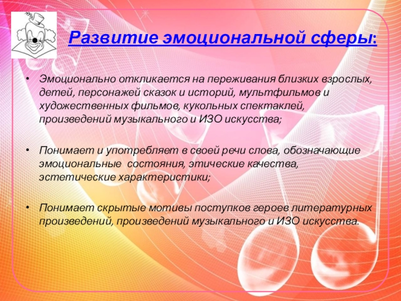 Проявляет интерес к стихам, песням и сказкам, рассматриванию картинки, стремится двигаться под музыку; эмоционально откликается на различные произведения культуры и искусства