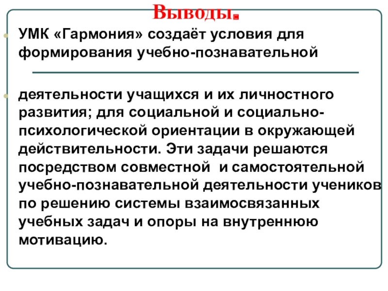 УМК «Гармония» создаёт условия для формирования учебно-познавательной