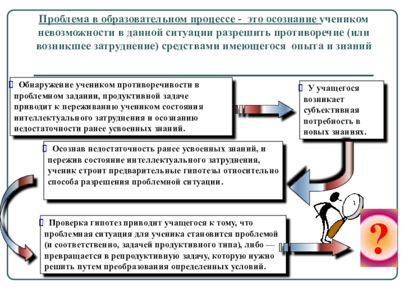 Проблемная ситуация побуждает его искать новый способ объяснения или действия.