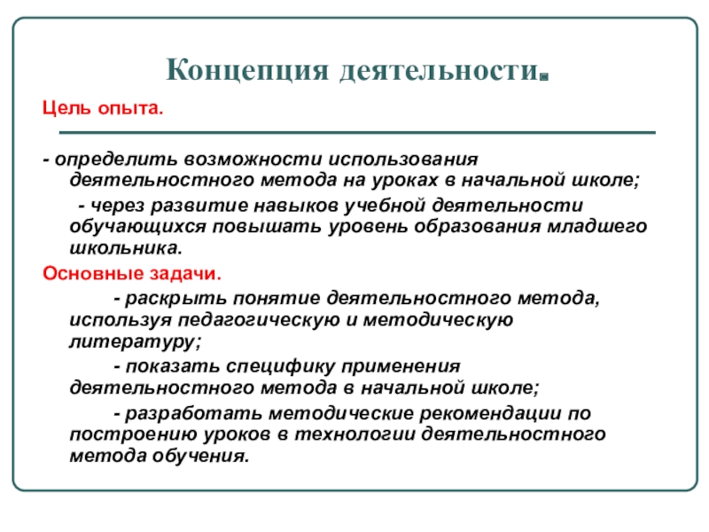 - раскрыть понятие деятельностного метода, используя педагогическую и методическую литературу;