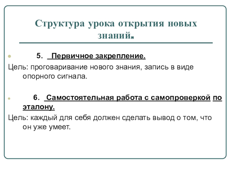 Цель: проговаривание нового знания, запись в виде опорного сигнала.