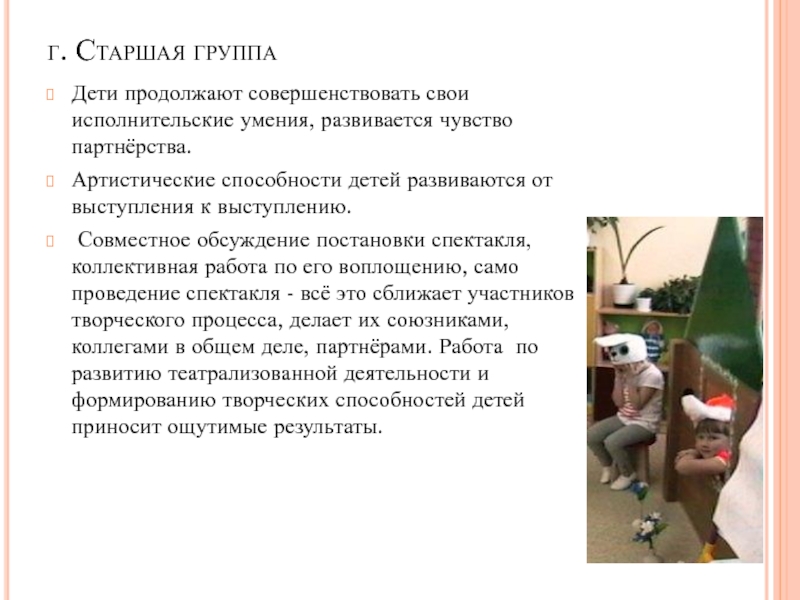 г) Характеристика театрализованных игр