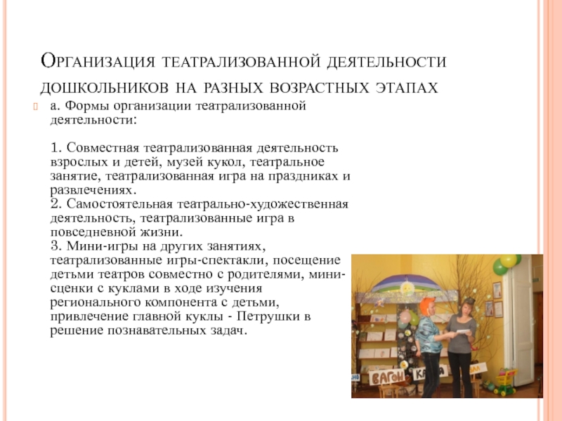 а. Формы организации театрализованной