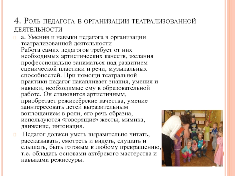 4. Роль педагога в организации театрализованной деятельности