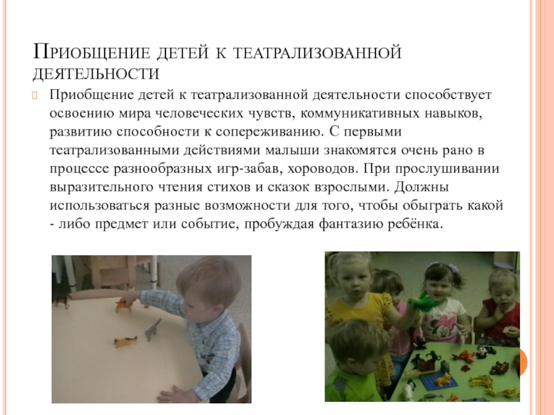 Слайд 7Приобщение детей к театрализованной деятельности