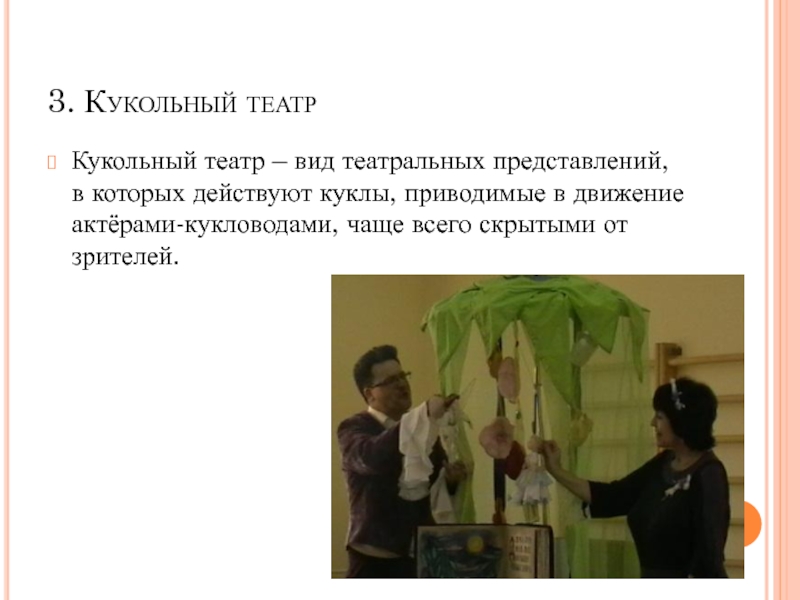Кукольный театр – вид театральных представлений, в которых действуют