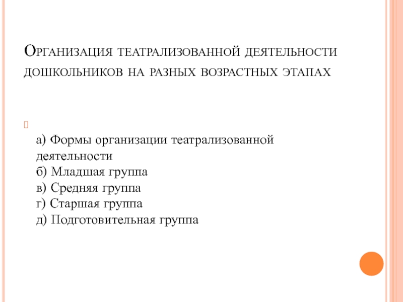 Слайд 3Организация театрализованной деятельности дошкольников на разных возрастных этапах