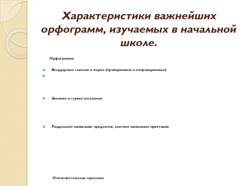 Характеристики важнейших орфограмм, изучаемых в начальной школе.