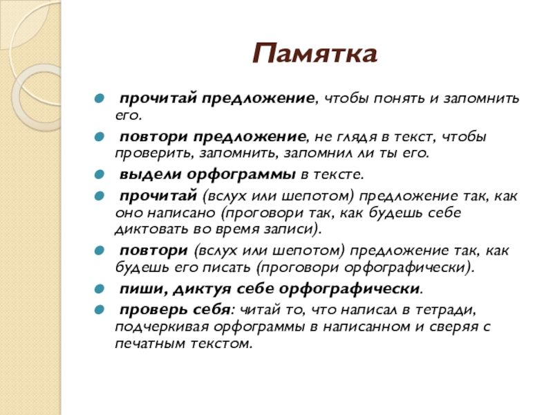повтори (вслух или шепотом) предложение так, как будешь его писать (проговори орфографически).
