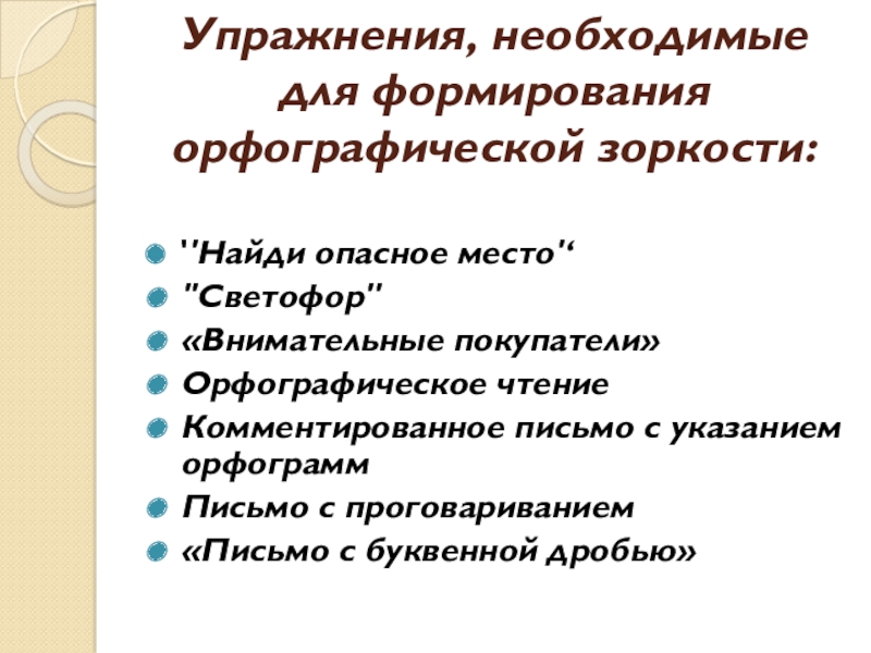 Упражнения, необходимые для формирования орфографической зоркости: