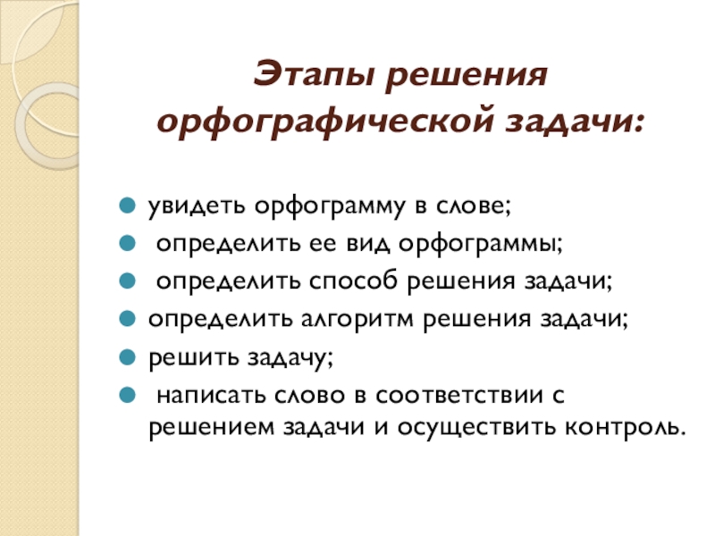 Этапы решения орфографической задачи: