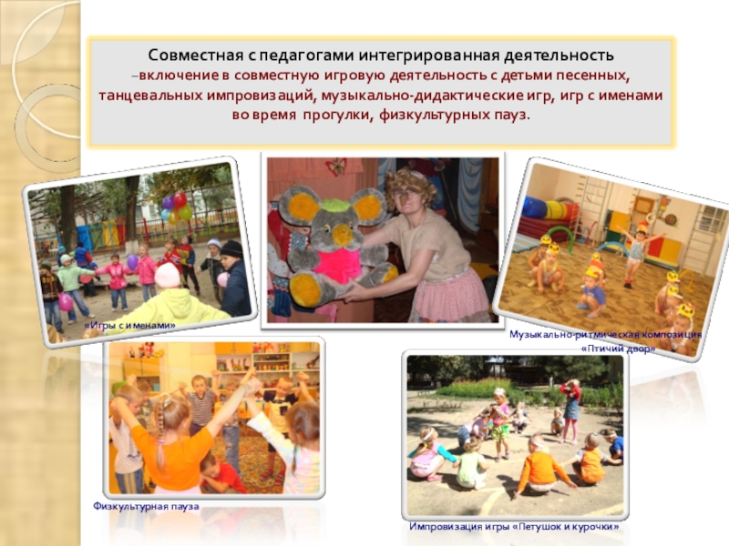 в сюжетных играх, хороводах, упражнениях,
