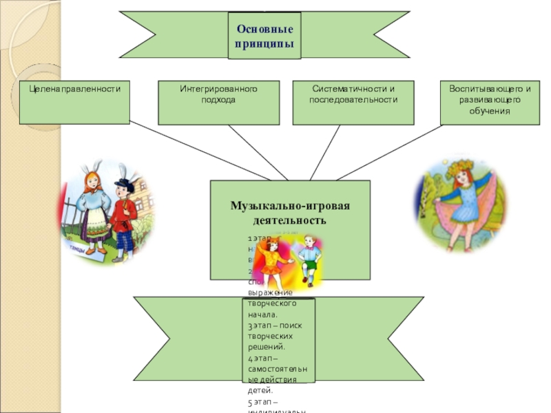 песенных сюжетов с использованием музыки, движений, слова.