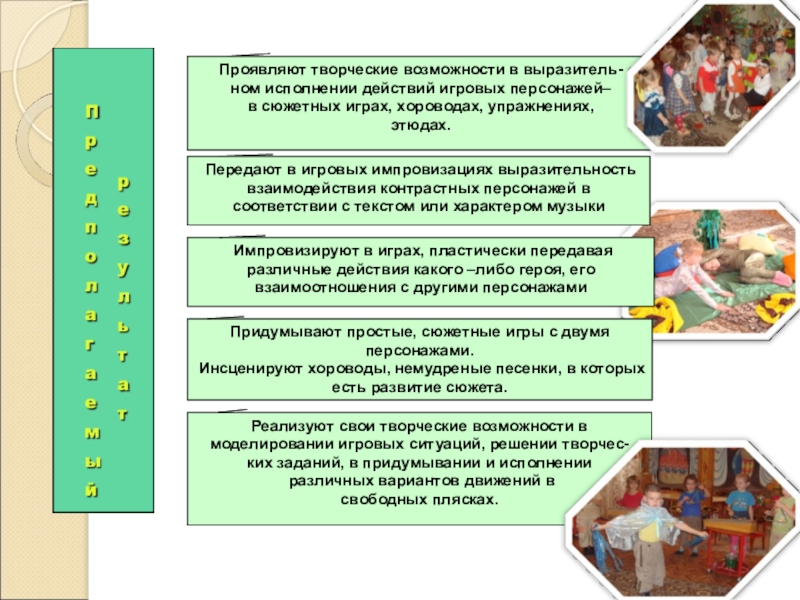 Реализуют свои творческие возможности в моделировании игровых ситуаций, решении творчес-