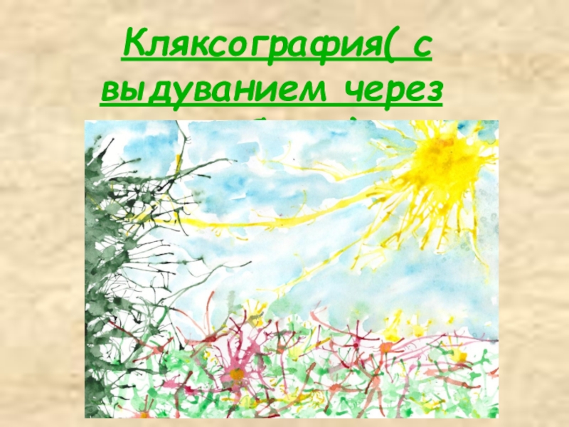 Слайд 10 Кляксография( с выдуванием через трубочку)